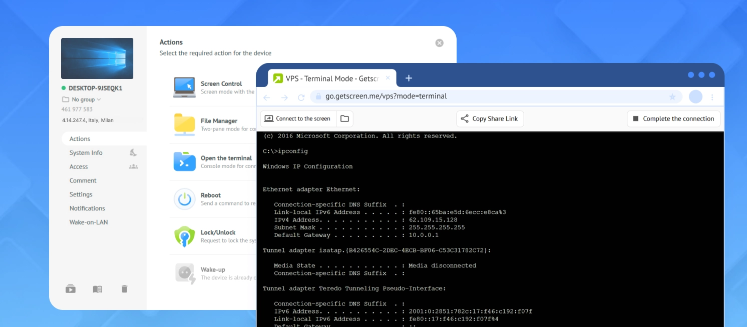 If the connection degrades, Getscreen.me can automatically hide the remote wallpaper and even switch to black‑and‑white mode to conserve bandwidth and improve responsiveness. You focus on the fix; we optimize the stream.
