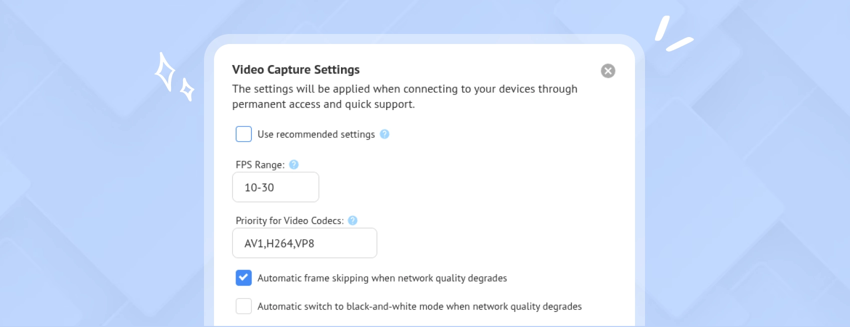 Apply these settings globally or per device — ensuring smooth sessions everywhere.