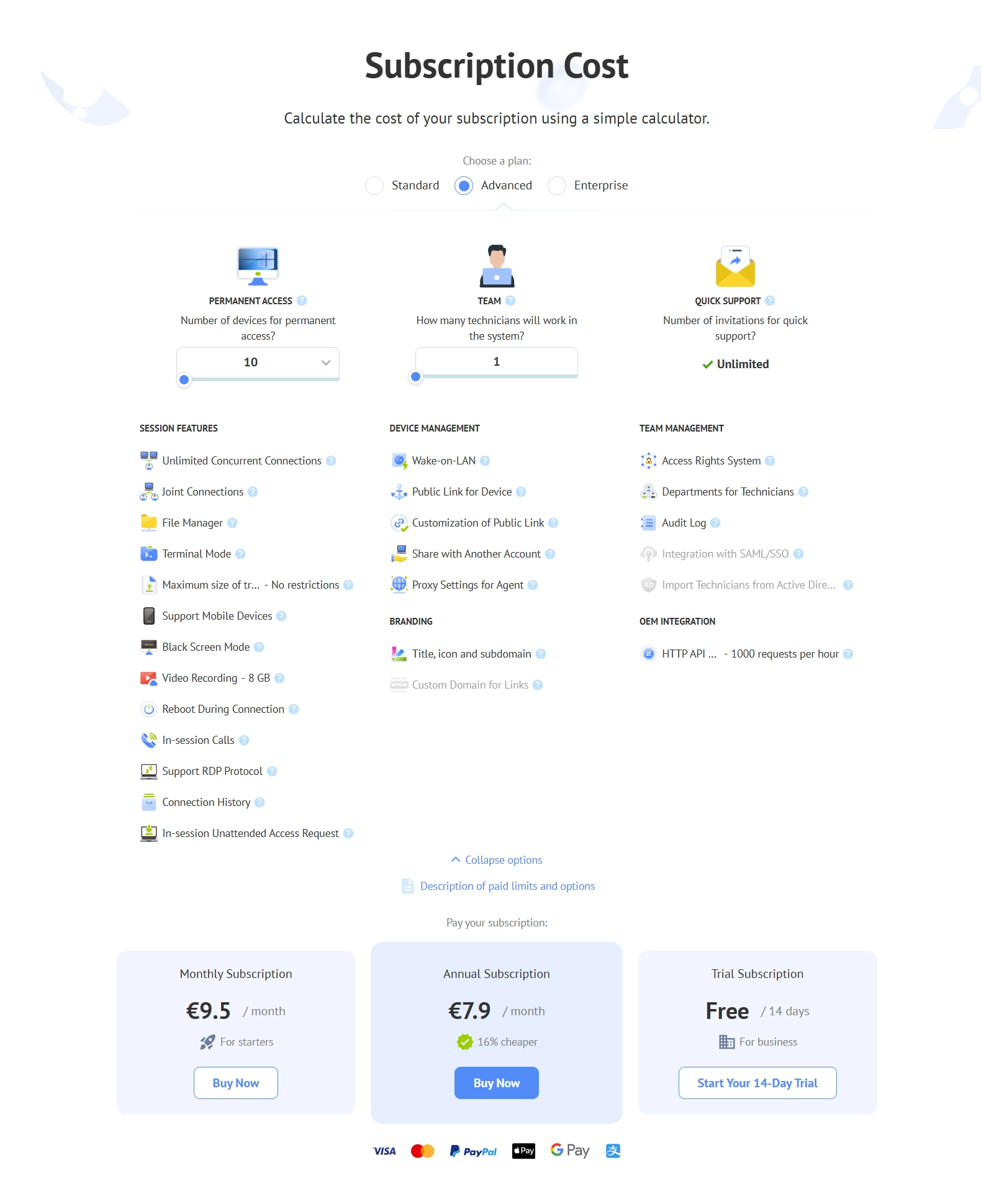 Instead of expanding internal infrastructure or hiring large IT teams, organizations can simply adjust their Connect plan to add more technicians, increasing device limits, and extending capabilities as needed. You can calculate the subscription cost and decide on the most suitable plan for a start.